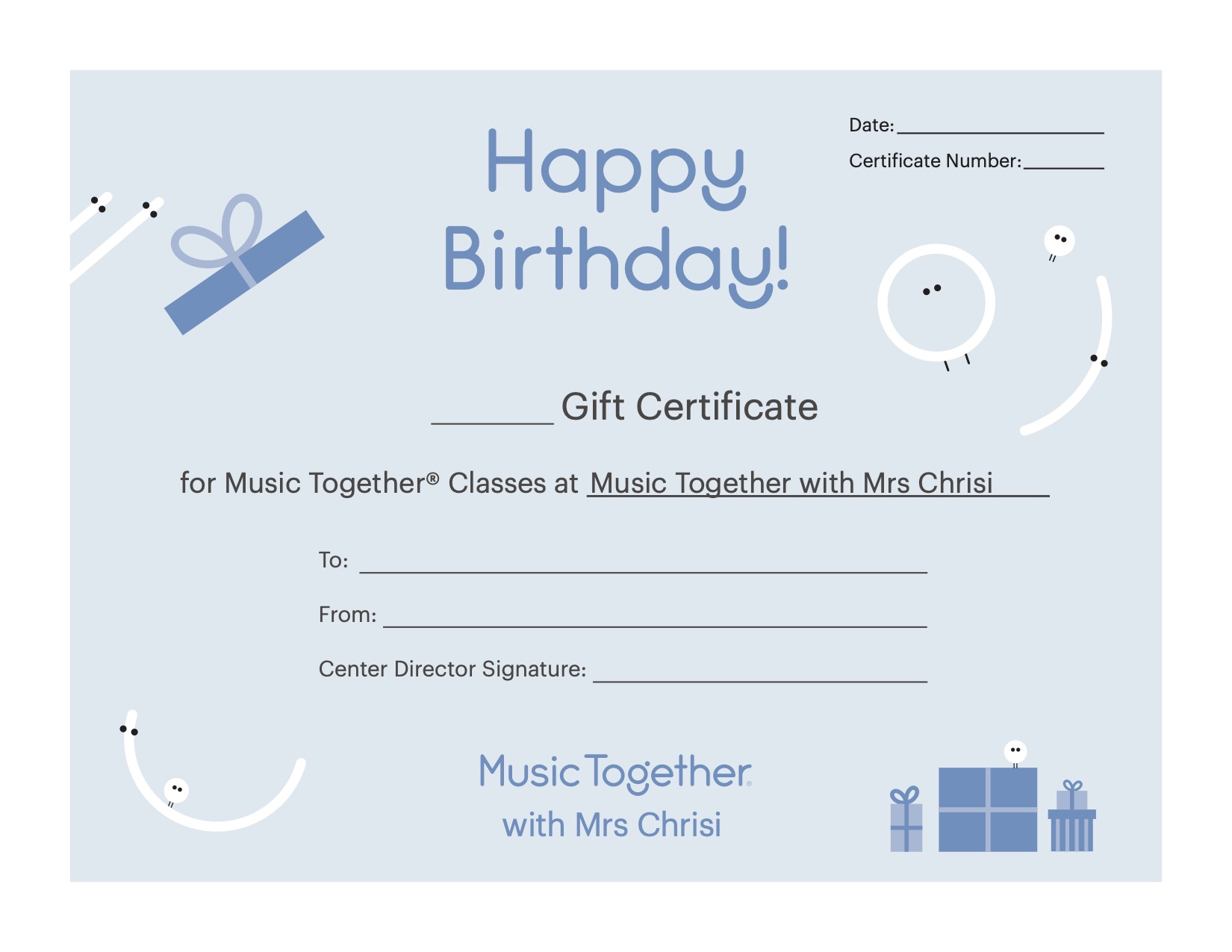 Available in any amount $10 - $500, these can be used for any future class with Music Together with Mrs. Chrisi.
